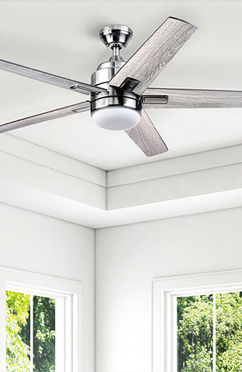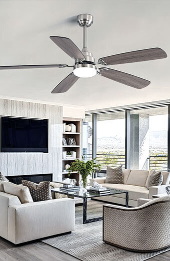 Installation of whisper-quiet, energy-efficient DC motor fans with multiple speed settings and reverse modes for year-round comfort.