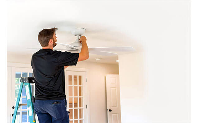 Removal and replacement of noisy, wobbly, or outdated ceiling fans with energy-efficient models, including safe disposal of old units.